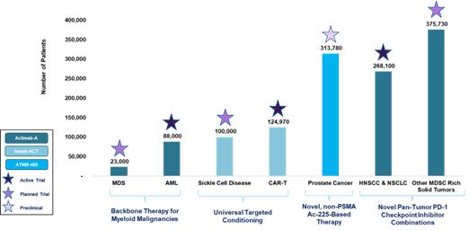 We are advancing two clinical stage product candidates that are directed against validated cancer targets. Actimab-A is our lead product candidate in development and is intended to address the significant unmet medical needs of patients with myeloid malignancies including acute myeloid leukemia (“AML”) and myelodysplastic syndromes (“MDS”). We are also evaluating Actimab-A’s potential to synergize with PD-1 immune checkpoint inhibitors (“ICIs”) in solid tumor indications through the depletion of immune cells known as myeloid derived suppressor cells (“MDSCs”). Iomab-ACT is a next-generation targeted conditioning agent we are developing with the intent to improve patient access to and outcomes with cellular therapies such as CAR-T for various blood cancer indications and gene therapies for non-malignant hematologic disorders such as sickle cell disease (“SCD”). We are also developing ATNM-400, a novel preclinical, non-prostate specific-membrane antigen (“PSMA”) targeting, first-in-class radiotherapy utilizing the Actinium-225 (“Ac-225”) radioisotope payload intended for patients with prostate cancer directed against a novel radiotherapy target.