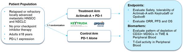 In March of 2025, we initiated our Actimab-A solid tumor program that will combine Actimab-A with PD-1 checkpoint inhibitors. We initiated this program to evaluate if Actimab-A can deplete CD33 expressing MDSCs and hence improve patient outcomes in combination with PD-1 ICIs such as KEYTRUDA® and OPDIVO®. The Actimab-A solid tumor program is comprised of several controlled, head-to-head clinical trials that will evaluate the combination of Actimab-A with KEYTRUDA® versus KEYTRUDA® alone, and Actimab-A with OPDIVO® versus OPDIVO® alone. The initial tumors that are being targeted are Head and Neck Squamous Cell Carcinoma (“HNSCC”) and Non-Small Cell Lung Cancer (“NSCLC”) with a separate trial for each indication.
