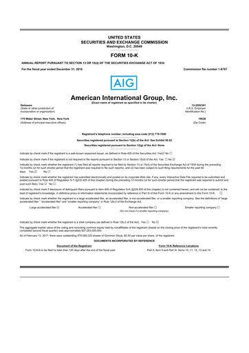Latest form 10-K annual reports for American International Group CIK: 0000005272