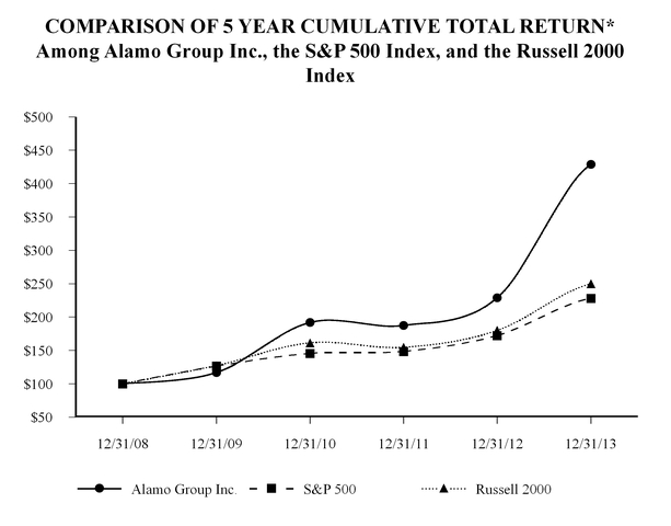 On February 24, 2014 the Company announced that it has entered into an agreement to acquire the operating units of Specialized Industries, LP. This includes the businesses of Super Products LLC, Wausau-Everest LP and Howard P. Fairfield LLC. Super Products is a manufacturer of vacuum trucks and related equipment, parts and service, which is complementary to Alamo’s VacAll operation. Wausau-Everest is a manufacturer of snow removal equipment which is complementary to Alamo’s Tenco and Henke operations. And, Howard P. Fairfield is a dealer/distribution operation primarily in the New England area. Together the