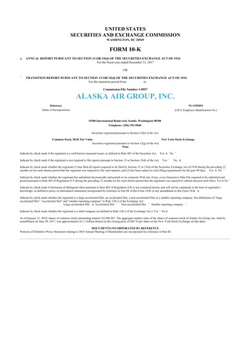 Latest form 10-K annual reports for Alaska Airlines CIK: 0000766421