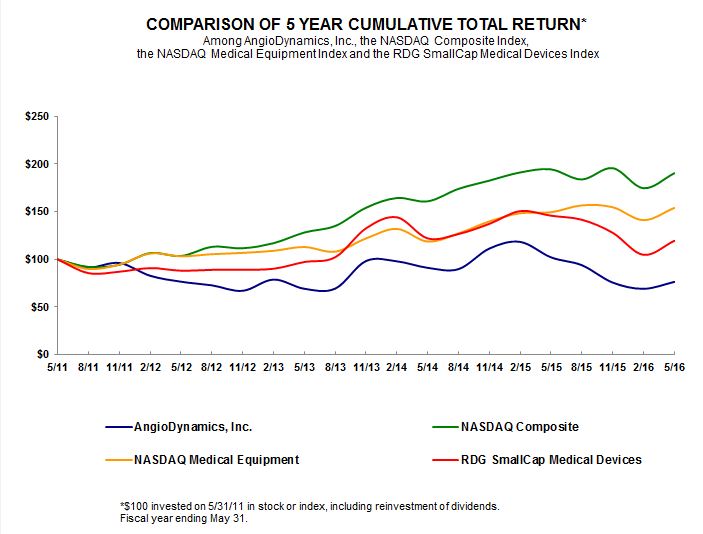 AngioDynamics 2015 Total Shareholder Return Performance Unit Agreement Program (incorporated by reference to Exhibit 10.1.5 of the Company’s annual report on Form 10-K filed with the Commission on August 10, 2015).