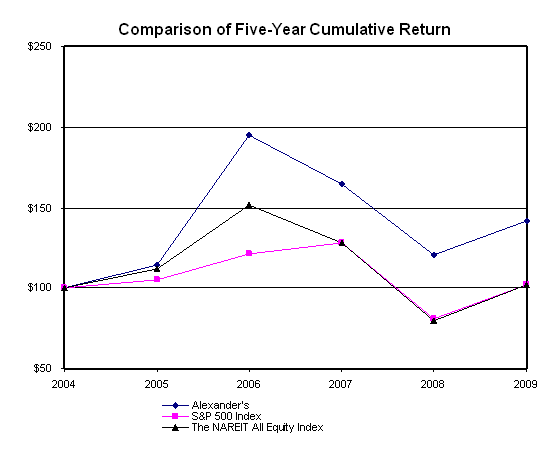 The aggregate market value of the voting and non-voting common shares held by non-affiliates of the registrant, (i.e., by persons other than officers and directors of Alexanders, Inc.) was $554,296,252 at June 30, 2009.