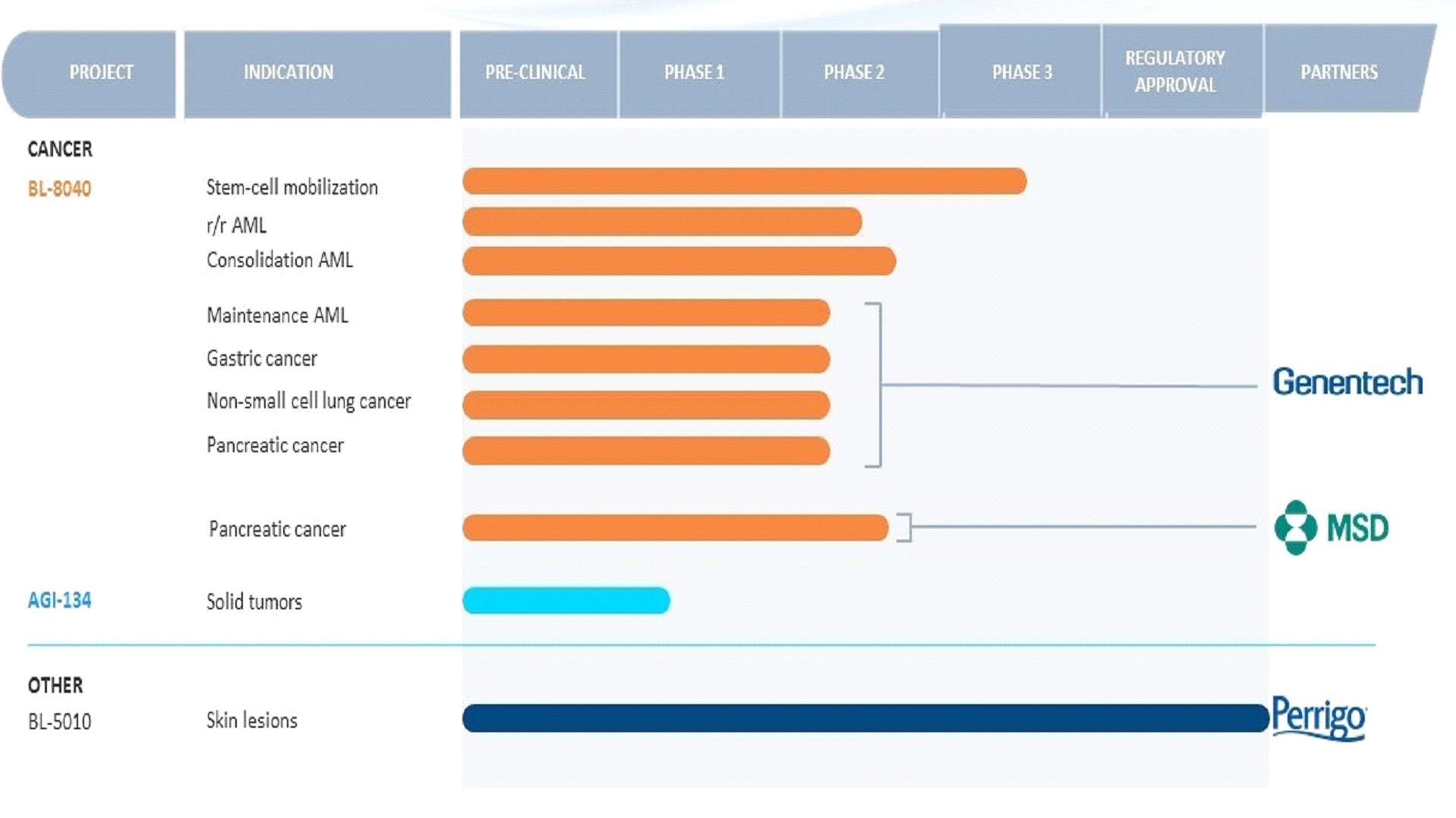 2018, the Company amended its license agreement with Biokine Therapeutics Ltd. (“Biokine”), originally entered into in September 2012, relating to the in-licensing rights to BL-8040. The amendment reduces the payment owed by the Company to Biokine on sublicense receipts (as defined in the license agreement) from 40% to 20% of sublicense receipts in exchange for: (i) a cash payment from the Company to Biokine of $10 million; (ii) the issuance of 4,980,080 ADSs with a value of $5 million and (iii) the payment of certain future milestone payments, up to an aggregate of $5 million in total, as specified in the amendment. Additionally, in certain limited instances, if the Company enters into a sublicense (as defined in the license agreement) within a defined period, the Company will pay Biokine an additional 10% of any upfront sublicense receipts received by the Company as a result of such sublicense.