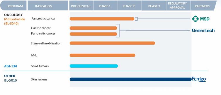 In October 2018, the Company amended its license agreement with Biokine, originally entered into in September 2012, relating to the in-licensing rights to BL-8040. The amendment reduces the payment owed by the Company to Biokine on sublicense receipts (as defined in the license agreement) from 40% to 20% of sublicense receipts in exchange for: (i) a cash payment from the Company to Biokine of $10 million; (ii) the issuance of 332,005 ADSs with a value of $5 million and (iii) the payment of certain future milestone payments, up to an aggregate of $5 million in total, as specified in the amendment.