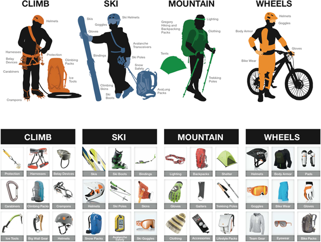 We deploy our sales force by geographic region with a focus on providing our products to a broad spectrum of active outdoor enthusiasts, from core rock climbers and mountaineers to first-time skiers and cyclists. Within each of our brands, we strive to create a unique look and image for our products using enhanced in-store merchandising displays and techniques to communicate those differences to our customer.