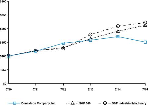 101The following financial information from the Donaldson Company, Inc. Annual Report on Form 10-K for the fiscal year ended July 31, 2015 as filed with the Securities and Exchange Commission, formatted in Extensible Business Reporting Language (XBRL): (i) the Consolidated Statements of Earnings, (ii) the Consolidated Balance Sheets, (iii) the Consolidated Statements of Cash Flows (iv) the Consolidated Statement of Changes in Shareholders’ Equity and (v) the Notes to Consolidated Financial Statements.