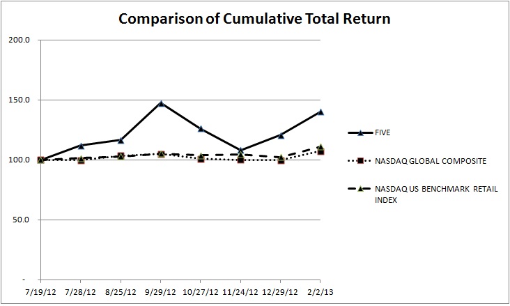 Five Below, Inc. 2012 Employee Stock Purchase Plan (incorporated by reference to Exhibit 10.1 of the Quarterly Report on Form 10-Q filed with the Commission on November 29, 2012)