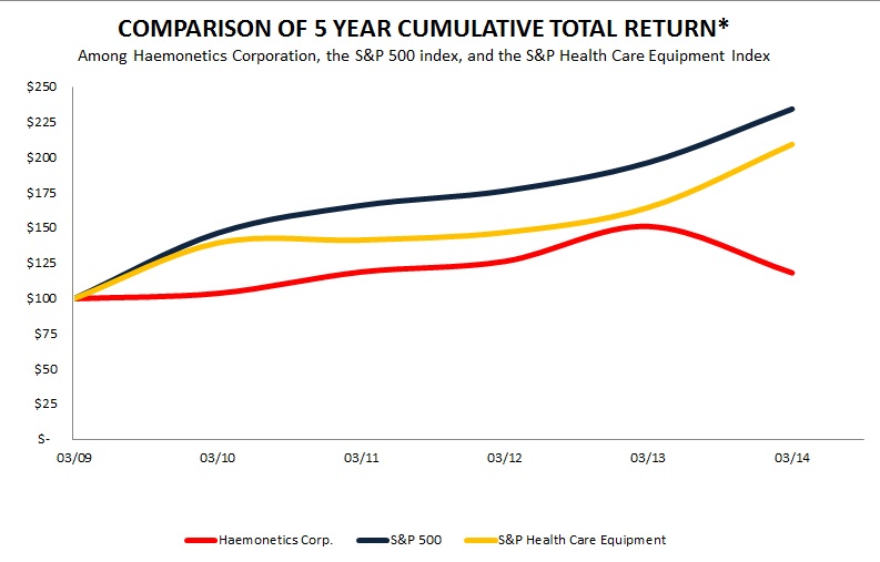 The following materials from Haemonetics Corporation on Form 10-K for the year ended March 30, 2013, formatted in Extensive Business Reporting Language (XBRL): (i) Consolidated Statements of Income, (ii) Consolidated Statements of Comprehensive Income (iii) Consolidated Balance Sheets, (iv) Consolidated Statement of Stockholders' Equity and Other Comprehensive Income, (v) Consolidated Statements of Cash Flows, and (vi) Notes to Consolidated Financial Statements, tagged as blocks of text.
