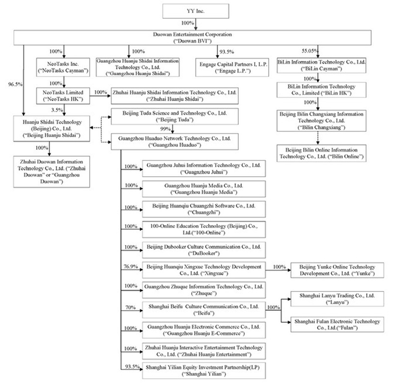 (1) In October 2014, the Group entered into an agreement with its CEO to inject Weihui into Bigo, a company set up and which was then controlled by the CEO. In May 2015, the Group made a further capital injection of RMB122,249 to Bigo and owned an aggregate of 350 Million shares of Bigo, representing approximately 25% of Bigo’s total outstanding shares as of December 31, 2015.