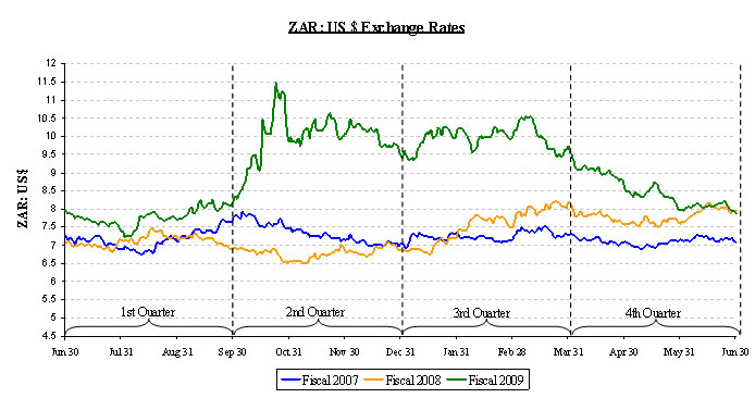 The Company entered into an asset swap arrangement (in the form of a $110 million 32-day call account instrument) in order to facilitate the short-term loan facility described in note 21, however this asset swap arrangement was not linked to the loan facility and did not require redemption on the same date as the repayment of the loan facility. The Company earned interest at a rate of one month US dollar London Interbank Offered Rate (“LIBOR”) plus 0.25% on this instrument. The Company gave a call notice to the obligor on September 10, 2008, and the capital of $110 million (or ZAR 1,100.7 million) and interest on this instrument was repaid on October 16, 2008. The Company has realized a foreign exchange gain of approximately $26.7 million for the year ended June 30, 2009.