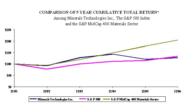 In our opinion, the consolidated financial statements referred to above present fairly, in all material respects, the financial position of Minerals Technologies Inc. and subsidiary companies as of December 31, 2006 and 2005, and the results of their operations and their cash flows for each of the years in the three-year period ended December 31, 2006, in conformity with U.S.