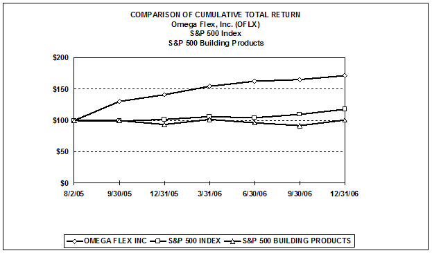 differentiate our systems from those of our competitors. In January 2005, Mestek announced its intention to distribute its equity ownership in our common stock to the Mestek shareholders. A registration statement for the Omega Flex common stock was filed with the Securities and Exchange Commission and the registration statement was declared effective on July 22, 2005. We also listed our common stock on NASDAQ National Market (now the NASDAQ Global Market) under the stock symbol “OFLX”, and began public trading of our common stock on August 1, 2005. All Mestek shareholders as of the record date for the distribution received one share of Omega Flex common stock for each share of Mestek common stock owned as of the record date. We are now a totally separate company from Mestek, and we do not use or share any material assets or service of Mestek in conducting our business. Our operating plans for 2007 are to continue to grow the distribution and sale of our TracPipe® flexible gas piping and industrial products, as well as to nurture new product development.