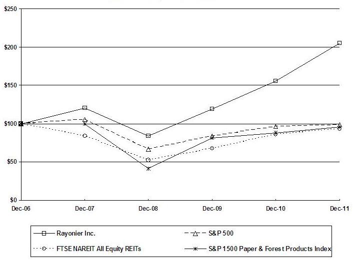 Five Year Revolving Credit Agreement dated April 21, 2011 among Rayonier Inc., Rayonier TRS Holdings Inc., Rayonier Operating Company LLC and Rayonier Forest Resources, L.P., as Borrowers, Credit Suisse AG as Administrative Agent, Credit Suisse Securities (USA) LLC, as Sole Bookrunner, Merrill Lynch, Pierce, Fenner & Smith Incorporated and J.P. Morgan Securities LLC, as Co-Syndication Agents, SunTrust Robinson Humphrey, Inc. and Wells Fargo Bank, National Association, as Co-Documentation Agents and Credit Suisse Securities (USA) LLC and Merrill Lynch, Pierce, Fenner & Smith Incorporated as Joint Lead Arrangers.