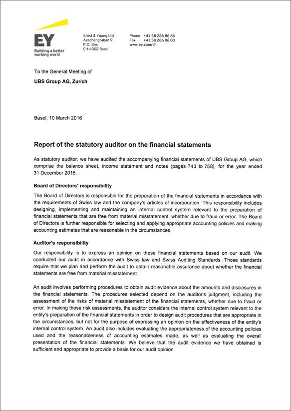 Annual publications: Annual report (SAP no. 80531): Published in both English and German, this single volume report provides a description of our Group strategy and performance; the strategy and performance of the business divisions and the Corporate Center; a description of risk, treasury, capital management, corporate governance, responsibility and senior management compensation, including compensation for the Board of Directors and the Group Executive Board members; and financial information, including the financial statements. Review (SAP no. 80530): The booklet contains key information on our strategy and financials. It is published in English, German, French and Italian. Compensation Report (SAP no. 82307): The report discusses our compensation framework and provides information on compensation for the Board of Directors and the Group Executive Board members. It is published in English and German.