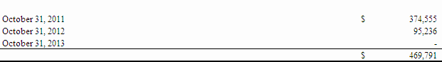 • Management fees nominally increased to $225,673 during the three months ended October 31, 2010 from $201,372 during the same period ended October 31, 2009.