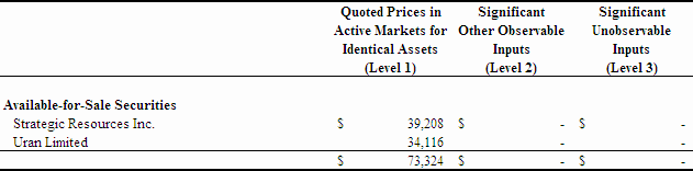 In accordance with ASC 410, Asset Retirement and Environmental Obligations, we capitalize the measured fair value of asset retirement obligations to mineral rights and properties. The asset retirement obligation is accreted to an undiscounted value until the time at which it they are expected to be settled. Actual retirement costs will be recorded against the asset retirement obligations when incurred. Any difference between the recorded asset retirement obligations and the actual retirement costs incurred will be recorded as a gain or loss in the period of settlement.