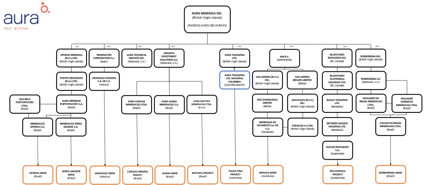 In this annual report, except where the context otherwise requires, Aura Minerals Inc., together with its subsidiaries, as the context requires, is referred to as “we,” “Aura Minerals,” “Aura” or the “Company.”