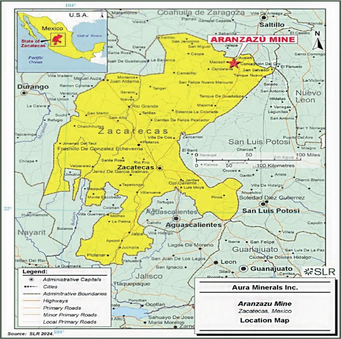 “Aranzazu” or “Aranzazu Property” or “Aranzazu Mine” is our underground copper mine that produces gold and silver as a by-product. It is located within the Municipalities of Concepcion del Oro and Mazapil in the State of Zacatecas, Mexico, near the northern border with the State of Coahuila.