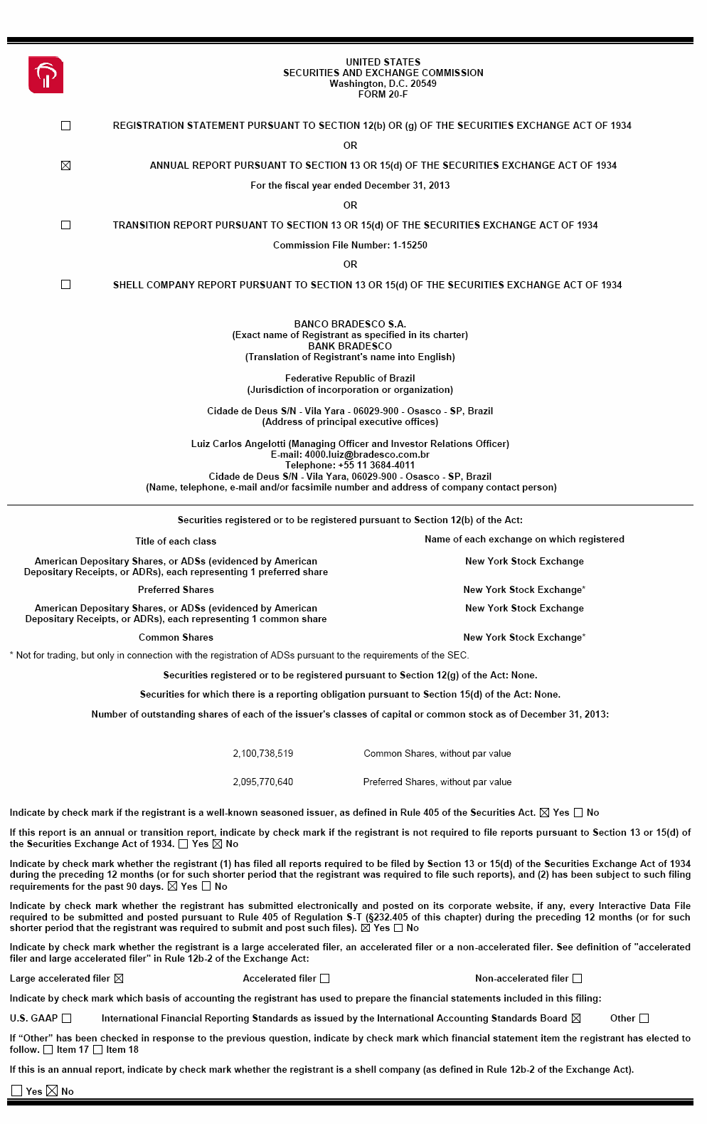 On January 2, 2014, the corporate restructuring of Odontoprev S.A, through which Bradesco, through its indirect subsidiary Bradesco Saúde S.A. (Bradesco Saúde), indirectly acquired interest representing 6.5% of Odontoprev’s voting capital held by Randal Luiz Zanetti (Mr. Randal). With this acquisition, Bradesco Saúde increased its interest on Odontoprev’s total and voting capital stock from 43.5% to approximately 50.01%, being its sole controlling shareholder. The Shareholder Agreement entered into between Bradesco Saúde and Mr. Randal was terminated on that date.