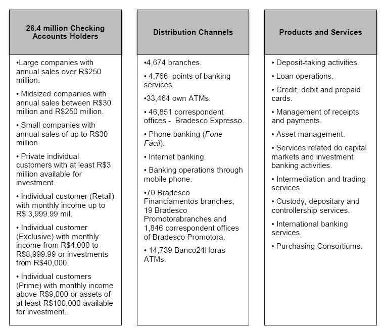 In this annual report, the terms "Bradesco," the "Company," the "Bank," the "Bradesco Group," "we,” the “Organization” and "us" refer to Banco Bradesco S.A., a sociedade anônima organized under the laws of Brazil and, unless otherwise indicated, its consolidated subsidiaries. We are a full-service financial institution providing, directly or through our subsidiaries, a full range of banking, financial, purchasing consortium management, asset management, insurance, investment banking, pension plan (or pension) and capitalization bond services for all segments of the Brazilian market. Our operations are based primarily in Brazil.