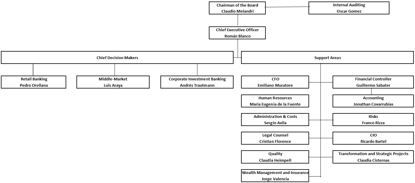Under the General Banking Law, banks must maintain regulatory capital of at least 8% of risk-weighted assets, net of required credit losses, as well as a paid-in capital and reserve requirement (“tire capital”) of at least 3% of total assets, also net of credit losses. Regulatory capital and basic capital are calculated on the basis of the Consolidated Financial Statements. As we are the result of a merger between two predecessors with significant market shares in the Chilean market, we are currently required to maintain a minimum regulatory capital to risk-weighted assets ratio of 11%.
