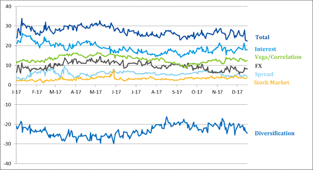 Value at Risk (VaR) is the basic variable for measuring and controlling the Group’s market risk. This risk metric estimates the maximum loss that may occur in a portfolio’s market positions for a particular time horizon and given confidence levelVaR figures are estimated following two methodologies: a) VaR without smoothing, which awards equal weight to the daily information for the immediately preceding last two years. This is currently the official methodology for measuring market risks vis-à-vis limits compliance of the risk. b) VaR with smoothing, which weighs more recent market information more heavily. This is a metric which supplements the previous one.VaR with smoothing adapts itself more swiftly to the changes in financial market conditions, whereas VaR without smoothing is, in general, a more stable metric that will tend to exceed VaR with smoothing when the markets show less volatile trends, while it will tend to be lower when they present upturns in uncertainty.