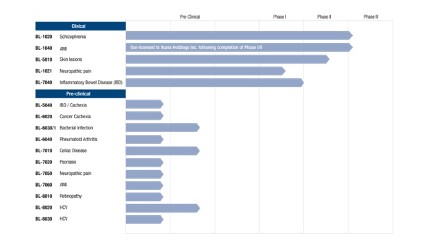 In accordance with the agreement, Ikaria is obligated to use commercially reasonable efforts to complete clinical development of and to commercialize BL-1040, and will bear all subsequent costs involved in the continued development of the product, the conduct and funding of its commercialization, and the prosecution and maintenance of patents.