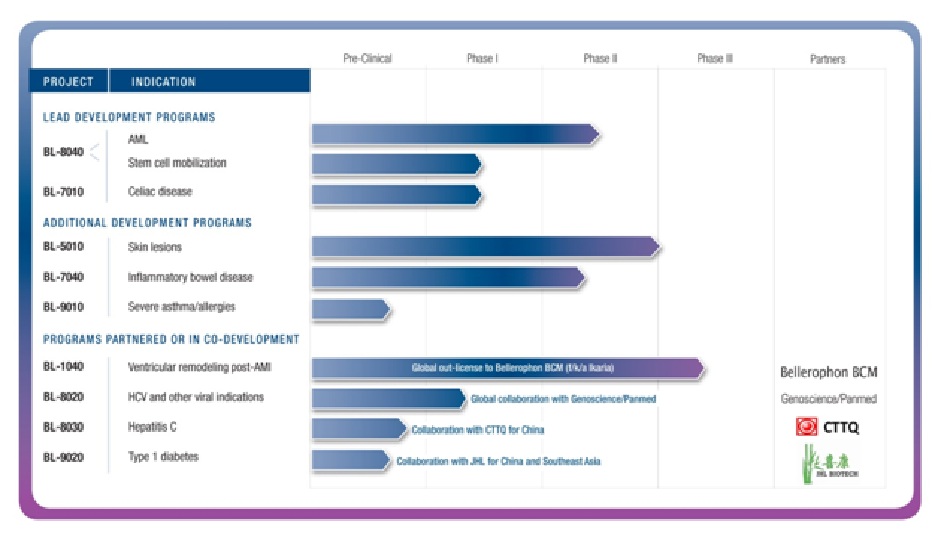 In June 2013, the Company signed an out-licensing agreement with Jiangsu Chia-tai Tianqing Pharmaceutical Co., Ltd. (“CTTQ”), the leading Chinese pharmaceutical company in the liver disease therapeutic area, for the development and commercialization of BL-8030, an orally available treatment for HCV in the pre-clinical stages of development. Under the terms of the agreement, the Company granted CTTQ exclusive rights to develop, manufacture and commercialize BL-8030 in China and Hong Kong. Pursuant to the agreement, CTTQ paid a small upfront license fee, and may pay future development, regulatory and commercialization milestones, for a total potential deal value of approximately $30 million. In addition, the Company has the right to receive high single-digit royalties on future sales of the drug. The Company has retained the right to develop and commercialize BL-8030 in other parts of the world.