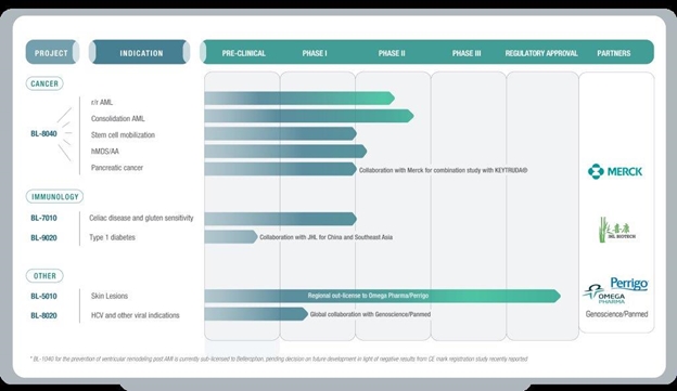 In January 2016, the Company announced a collaboration with MSD, known as Merck in the US and Canada, in the field of cancer immunotherapy. The Company plans to sponsor and conduct a Phase 2 study investigating the Company’s BL-8040 oncology compound in combination with KEYTRUDA®, MSD’s anti-PD-1 therapy, in patients with pancreatic cancer. The study is planned to commence by mid-2016. Upon completion of the study, or at any earlier point, both parties will have the option to expand the collaboration to include a pivotal registration study.