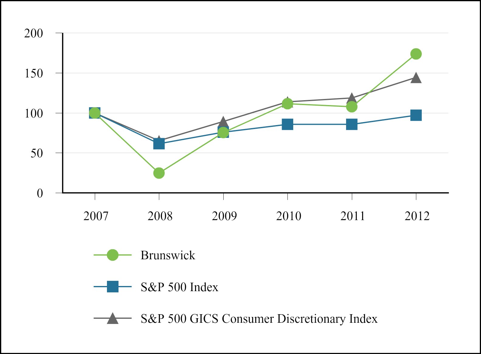 2012 Performance Share Grant Terms and Conditions Pursuant to the Brunswick Corporation 2003 Stock Incentive Plan, filed as Exhibit 10.6 to the Company's Quarterly Report on Form 10-Q for the quarter ended March 31, 2012, as filed with the Securities and Exchange Commission on May 4, 2012, and hereby incorporated by reference.