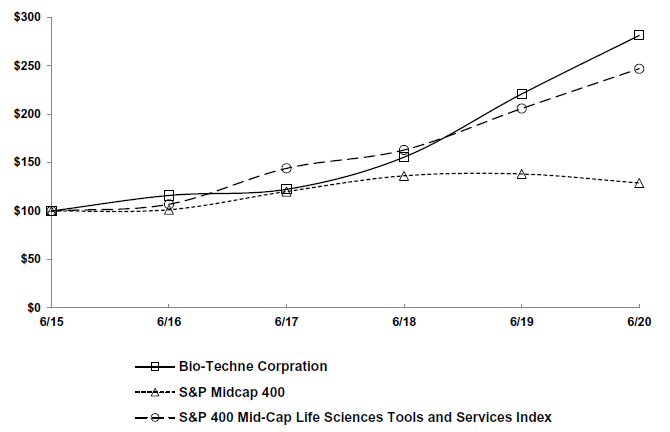 0000842023BIO-TECHNE Corpfalse--06-30FY2020398775980005,000,0005,000,00000000.010.01100,000,000100,000,00038,453,04638,453,04637,934,04037,934,04000003,2390015000051.281.281031.41.42,5220000Gains (losses) on the interest swap will be reclassified into interest expense as payments on the derivative agreement are made.The Company reclassified ($4,503) to interest expense and a related tax benefit tax of $1,040 during fiscal 2020. Approximately $7,035 of the $13,253 will be reclassified in the 12 months subsequent to June 30, 2020. The Company had deferred tax benefits of $4,058 and $2,921 included in the accumulated other comprehensive income loss as of June 30, 2020 and June 30, 2019, respectively.Total cash paid for the Company's operating leases during the year ended June 30, 2020 include cash amounts paid on operating lease liabilities and variable lease expenses. Cash flow impacts from right of use assets and lease liabilities are presented net on the cash flow statement in changes in other operating activity. Consists of holdback payments due at future dates and liabilities for contingent consideration. Further information regarding liabilities for contingent consideration can be found in Notes 4 and 5.Included in available-for-sale investments on the condensed consolidated balance sheet. The cost basis in the Company's investment in ChemoCentryx Inc (CCXI) was $7.6 million and $18.8 million as of March 31, 2020 and June 30, 2019, respectively. The Company has a warrant to purchase additional CCXI equity shares which was valued at $5.6 million as of March 31, 2020. The fair value of the warrant as of June 30, 2019 was not material. Included in available-for-sale investments on the balance sheet. The certificate of deposits have contractual maturity dates within one year.Finished goods inventory of $4,646 and $3,239 is included within other long-term assets in the June 30, 2020 and June 30, 2019 Balance Sheets, respectively, as it forecasted to be sold after the 12 months subsequent to the consolidated balance sheet date. Amounts do not total due to rounding00008420232019-07-012020-06-30iso4217:USD00008420232019-12-31xbrli:shares00008420232020-08-21thunderdome:item00008420232018-07-012019-06-3000008420232017-07-012018-06-30iso4217:USDxbrli:shares00008420232020-06-3000008420232019-06-300000842023us-gaap:CommonStockMember2017-06-300000842023us-gaap:AdditionalPaidInCapitalMember2017-06-300000842023us-gaap:RetainedEarningsMember2017-06-300000842023us-gaap:AccumulatedOtherComprehensiveIncomeMember2017-06-3000008420232017-06-300000842023us-gaap:RetainedEarningsMember2017-07-012018-06-300000842023us-gaap:AccumulatedOtherComprehensiveIncomeMember2017-07-012018-06-300000842023us-gaap:CommonStockMember2017-07-012018-06-300000842023us-gaap:AdditionalPaidInCapitalMember2017-07-012018-06-300000842023us-gaap:CommonStockMember2018-06-300000842023us-gaap:AdditionalPaidInCapitalMember2018-06-300000842023us-gaap:RetainedEarningsMember2018-06-300000842023us-gaap:AccumulatedOtherComprehensiveIncomeMember2018-06-3000008420232018-06-300000842023srt:CumulativeEffectPeriodOfAdoptionAdjustmentMemberus-gaap:RetainedEarningsMember2018-06-300000842023srt:CumulativeEffectPeriodOfAdoptionAdjustmentMemberus-gaap:AccumulatedOtherComprehensiveIncomeMember2018-06-300000842023srt:CumulativeEffectPeriodOfAdoptionAdjustmentMember2018-06-300000842023us-gaap:RetainedEarningsMember2018-07-012019-06-300000842023us-gaap:AccumulatedOtherComprehensiveIncomeMember2018-07-012019-06-300000842023us-gaap:CommonStockMember2018-07-012019-06-300000842023us-gaap:AdditionalPaidInCapitalMember2018-07-012019-06-300000842023us-gaap:CommonStockMember2019-06-300000842023us-gaap:AdditionalPaidInCapitalMember2019-06-300000842023us-gaap:RetainedEarningsMember2019-06-300000842023us-gaap:AccumulatedOtherComprehensiveIncomeMember2019-06-300000842023srt:CumulativeEffectPeriodOfAdoptionAdjustmentMemberus-gaap:CommonStockMember2019-06-300000842023srt:CumulativeEffectPeriodOfAdoptionAdjustmentMemberus-gaap:AdditionalPaidInCapitalMember2019-06-300000842023srt:CumulativeEffectPeriodOfAdoptionAdjustmentMemberus-gaap:RetainedEarningsMember2019-06-300000842023srt:CumulativeEffectPeriodOfAdoptionAdjustmentMemberus-gaap:AccumulatedOtherComprehensiveIncomeMember2019-06-300000842023srt:CumulativeEffectPeriodOfAdoptionAdjustmentMember2019-06-300000842023us-gaap:RetainedEarningsMember2019-07-012020-06-300000842023us-gaap:AccumulatedOtherComprehensiveIncomeMember2019-07-012020-06-300000842023us-gaap:CommonStockMember2019-07-012020-06-300000842023us-gaap:AdditionalPaidInCapitalMember2019-07-012020-06-300000842023us-gaap:CommonStockMember2020-06-300000842023us-gaap:AdditionalPaidInCapitalMember2020-06-300000842023us-gaap:RetainedEarningsMember2020-06-300000842023us-gaap:AccumulatedOtherComprehensiveIncomeMember2020-06-30utr:Y0000842023us-gaap:EquipmentMembersrt:MinimumMember2019-07-012020-06-300000842023us-gaap:EquipmentMembersrt:MaximumMember2019-07-012020-06-300000842023tech:BuildingBuildingImprovementsAndLeaseholdImprovementsMembersrt:MinimumMember2019-07-012020-06-300000842023tech:BuildingBuildingImprovementsAndLeaseholdImprovementsMembersrt:MaximumMember2019-07-012020-06-300000842023srt:MinimumMember2019-07-012020-06-300000842023srt:MaximumMember2019-07-012020-06-300000842023us-gaap:TradeNamesMember2019-07-012020-06-300000842023us-gaap:TradeNamesMember2020-06-30xbrli:pure00008420232002-07-012020-06-300000842023us-gaap:AccountingStandardsUpdate201602Member2019-07-010000842023tech:ConsumablesMember2019-07-012020-06-300000842023tech:ConsumablesMember2018-07-012019-06-300000842023tech:ConsumablesMember2017-07-012018-06-300000842023tech:InstrumentsMember2019-07-012020-06-300000842023tech:InstrumentsMember2018-07-012019-06-300000842023tech:InstrumentsMember2017-07-012018-06-300000842023us-gaap:ServiceMember2019-07-012020-06-300000842023us-gaap:ServiceMember2018-07-012019-06-300000842023us-gaap:ServiceMember2017-07-012018-06-300000842023tech:ProductAndServicesMember20
