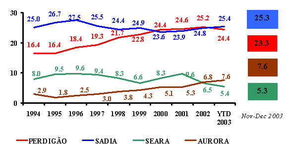 The total number of issued shares of each class of stock of PERDIGÃO S.A. as of December 31, 2003 was: