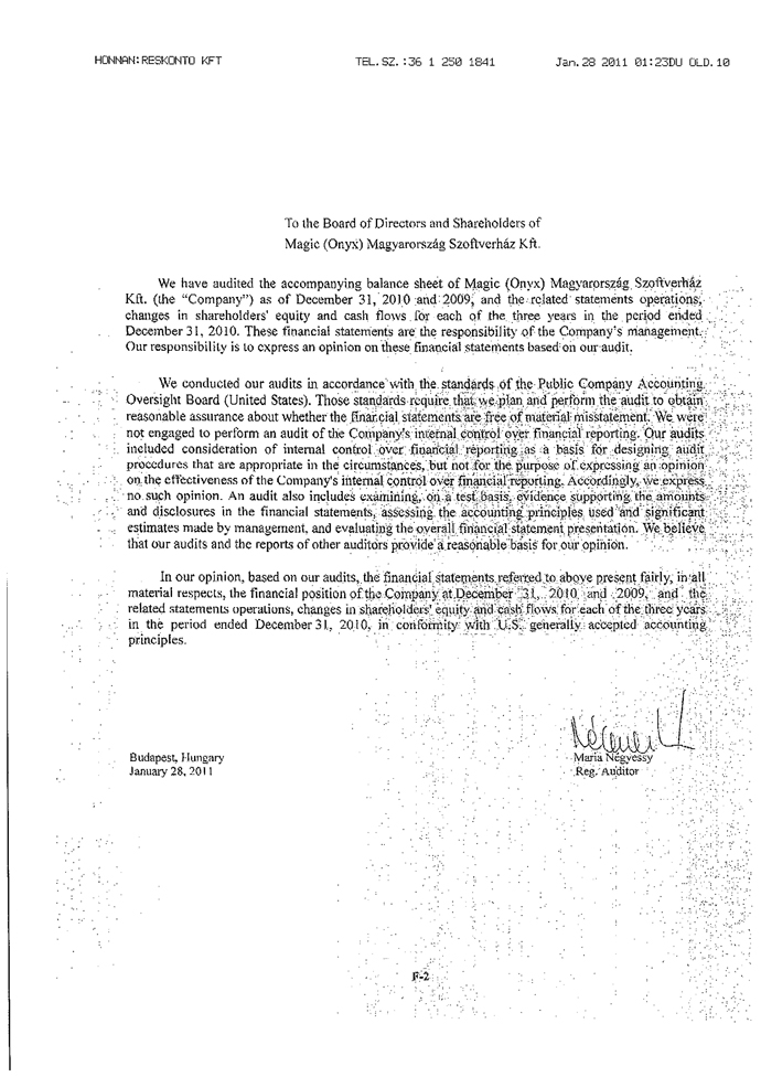 We have audited the accompanying consolidated statements of operations, changes in equity and cash flows for the year ended December 31, 2009 of Formula Systems (1985) Ltd. and its subsidiaries (the “Company”). These financial statements are the responsibility of the Company’s management. Our responsibility is to express an opinion on these financial statements based on our audits.