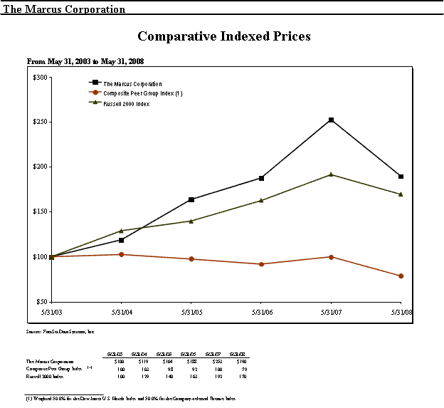 The Companys Board of Directors has authorized the issuance of up to 750,000 shares of Common Stock for The Marcus Corporation Dividend Reinvestment and Associate Stock Purchase Plan. At May 29, 2008, there were 573,706 shares available under this authorization.