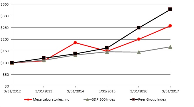 The aggregate market value as of September 30, 2016 (the last business day of the registrant's most recently completed second fiscal quarter), of the voting and non-voting common equity of Mesa Laboratories Inc. held by non-affiliates (assuming, for this purpose, that all directors, officers and owners of 5% or more of the registrant’s common stock are deemed affiliates) computed by reference to the price at which the common equity was last sold ($114.36 per share) was $248,044,000.