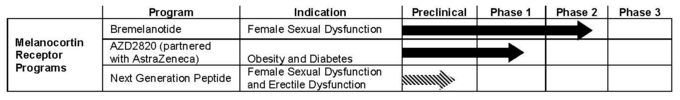 The historical amounts of project spending above exclude general research and development spending, which decreased to $1.0 million for three months ended September 30, 2011 compared to $2.7 million for three months ended September 30, 2010. The decrease is the result of reducing staffing levels pursuant to our strategic decision announced in September 2010 to focus resources and efforts on clinical trials of bremelanotide and PL-3994 and preclinical development of an inhaled formula of PL-3994 and a new peptide drug candidate for sexual dysfunction.