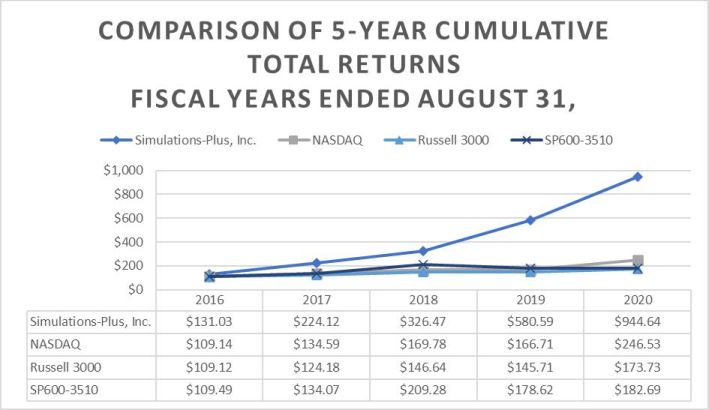 Simulations Plus, Inc. $9,381  $5,144  $5,060  $19,585