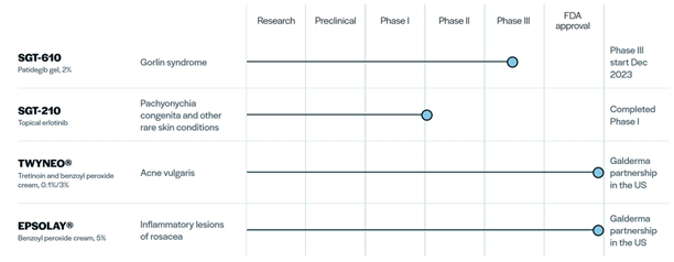 “SGT-610” - SGT-610 (patidegib), an investigational topical treatment designed to prevent new Basel Cell Carcinomas (BCCs) formation in adults with Gorlin Syndrome;