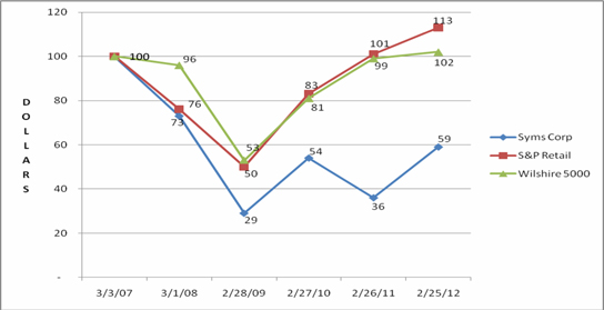 Since the acquisition of the assets from Filene’s, Inc. in June 2009, the Company had continued to assess the most effective manner in which to integrate the operations of Filene’s, LLC and Syms to maximize the synergies of the two businesses. This plan included the integration of the two IT systems into one common platform, the consolidation of distribution center functions, the co-branding of several stores, the closing of Filene’s Massachusetts office and related reductions in staffing levels. In addition, the Company closed four under-performing stores in fiscal 2010. The Company was required to continue to make lease payments on two of these closed stores, one through May 2012 and the other through September 2017. The Company had recorded the present value of these payments (net of estimated sub-lease income) as a restructuring charge totaling $7.2 million in 2010.