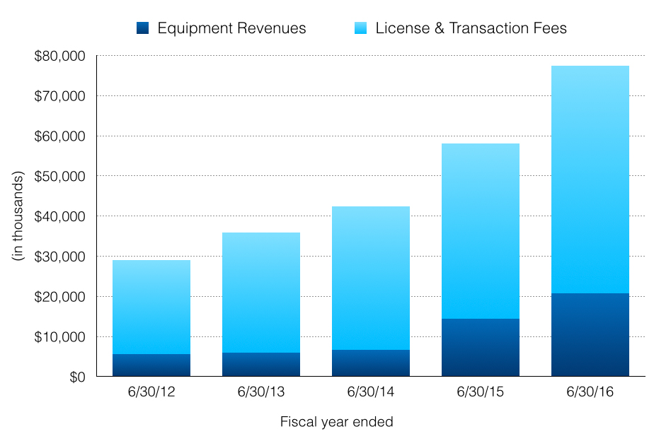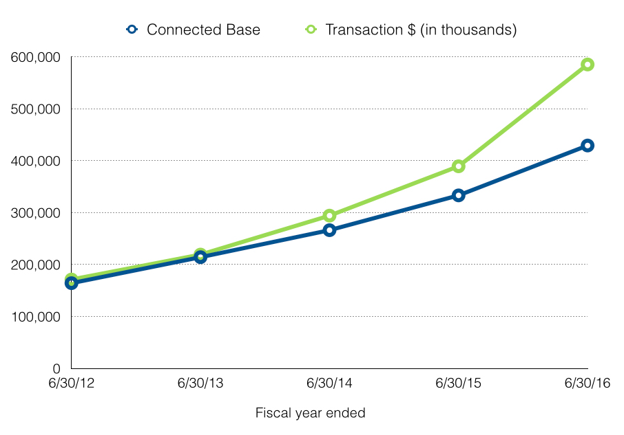 As of June 30, 2016, the Company had approximately 429,000 connections to its ePort Connect service, compared to approximately 333,000 connections as of June 30, 2015, representing a 29% increase. During the fiscal year ended June 30, 2016, the Company processed approximately 316 million cashless transactions totaling approximately $584 million in transaction dollars, representing a 46% increase in transaction volume and a 50% increase in dollars processed from the 217 million cashless transactions totaling approximately $389 million during the previous fiscal year ended June 30, 2015.