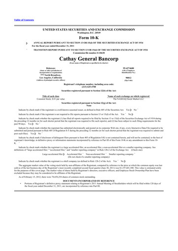 Latest form 10-K annual reports for Cathay General Bancorp CIK: 0000861842