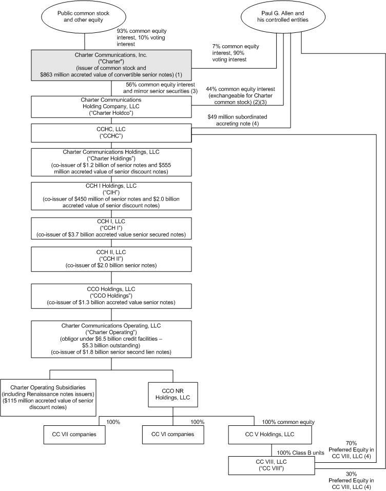 This annual report on Form 10-K is for the year ended December 31, 2005. The Securities and Exchange Commission ("SEC") allows us to "incorporate by reference" information that we file with the SEC, which means that we can disclose important information to you by referring you directly to those documents. Information incorporated by reference is considered to be part of this annual report. In addition, information that we file with the SEC in the future will automatically update and supersede information contained in this annual report. In this annual report, "we," "us" and "our" refer to Charter Communications, Inc., Charter Communications Holding Company, LLC and their subsidiaries.