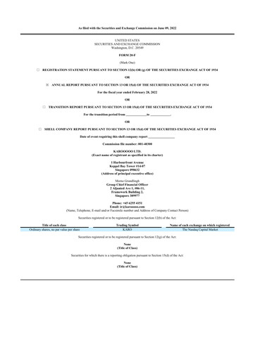 Neueste 20-F Jahresberichte für Karooooo CIK: 0001828102Das 20-F ist ein 10-K-Äquivalent für Nicht-US-Unternehmen. Als ausländisches Unternehmen reicht Karooooo nur 20-F-Berichte ein