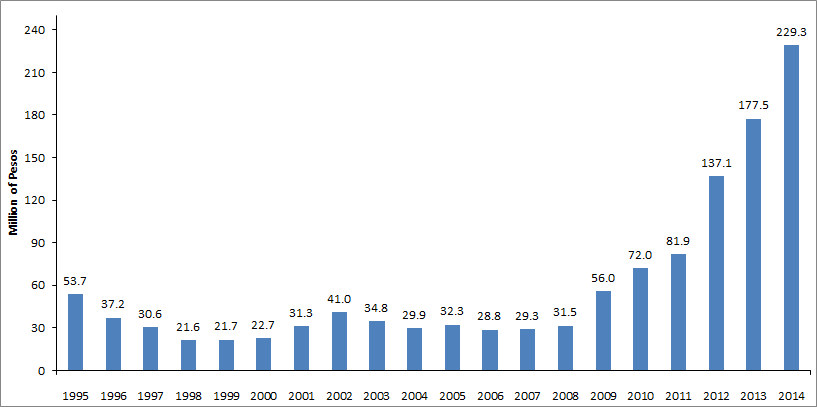 During the fiscal year being reported, the Company received disbursements for $ 79.2 million, relating to installments 1 through 4, in addition to the advance payment collected in fiscal year 2013 for $ 20 million. As of December 31, 2014, the Company recorded $ 52 million as Non-current deferred revenue and $ 47.2 million as Non-current trade payables – Customer contributions.