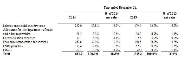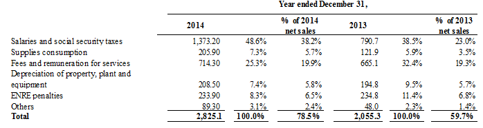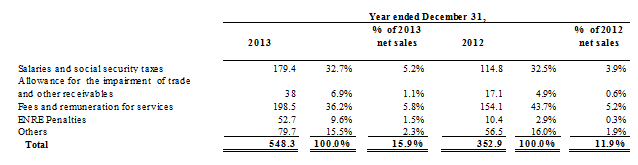 In September 2013, the Company and the Interior and Transport Ministry entered into a supply and financial contribution arrangement pursuant to which the Federal Government will finance the necessary electric works aimed at adequately meeting the greater power requirements of the Mitre and Sarmiento railway lines.