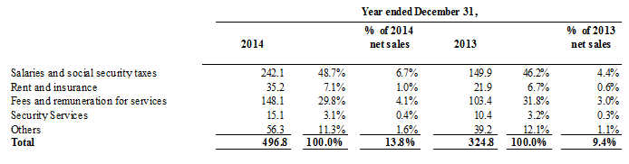 The selected statement of comprehensive (loss) income data for the years ended December 31, 2014, 2013, 2012 and 2011, and the selected statement of financial position data as of December 31, 2014, 2013, 2012 and 2011 have been prepared in accordance with International Financing Reporting Standards (“IFRSˮ), as issued by the International Accounting Standards  Board (“IASBˮ), and have been derived from our financial statements, which were audited by Price Waterhouse & Co. S.R.L. (“PwC”), member firm of PricewaterhouseCoopers network. The financial data as of December 31, 2011 and 2012 is derived from our audited consolidated financial statements that are not included in this annual report, which were also audited by PwC.