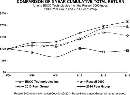 ESCO is also continually seeking opportunities to supplement its growth by making strategic acquisitions. Information about the Company’s acquisitions during fiscal 2013 is provided in Note 3 of the Notes to Consolidated Financial Statements included herein; the Company did not make any acquisitions during fiscal 2014.