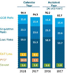 For 2018, we modified our executive compensation program to reflect our commitment to long-term, sustainable, profitable growth. Individual 2018 short-term incentive awards for the Executive Leadership Team (ELT) are based on metrics designed to emphasize business unit accountability and on an assessment of individual strategic and qualitative performance. Our 2018 long-term incentive (LTI) program for the ELT consists of performance share units (PSUs), restricted stock units (RSUs) and stock options (weighted 50 percent, 25 percent and 25 percent, respectively). PSUs will be earned over a three-year performance period based on a mix of operating metrics consisting of improvement in Combined Ratio, growth in Core Book Value per Share and Core Normalized Return on Equity. In addition, annual LTI grant amounts for ELT members take into account an assessment of individual performance.