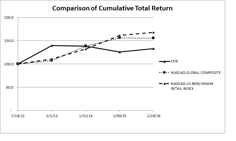 Five Below, Inc. Performance Bonus Plan (incorporated by reference to Exhibit 10.16 of Amendment No. 2 to the Registration Statement on Form S-1 (File No. 333-180780) filed with the Commission on June 12, 2012)